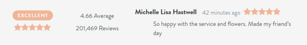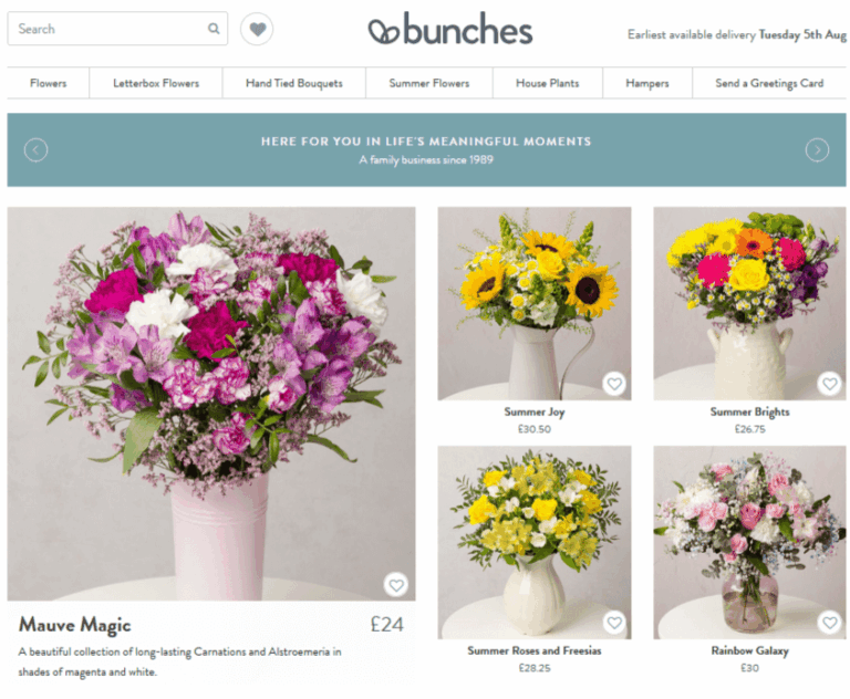 “I have used bunches a number of times, so much choice I couldn’t make my mind up so used the florist choice, my friend was thrilled with her flowers they looked lovely Ordered in the afternoon delivered the next day wow amazing” Helen Blackburn